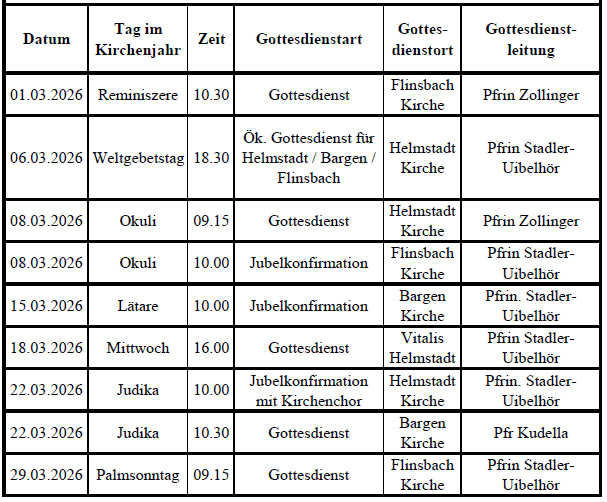 Wegen des Bezirksbläserwochendes des Posaunenchores wurden die Termine für die Jubelkonfirmation Flinsbach mit Bargen getauscht: